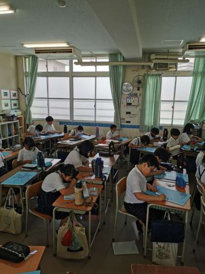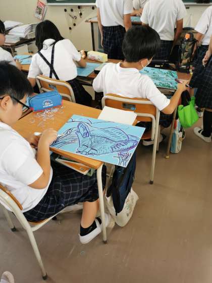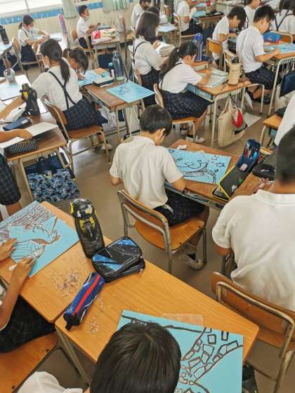 集中して掘り進めています。慎重に細く彫っている子もいますし、悩みながら一本ずつ彫っている子もいます。