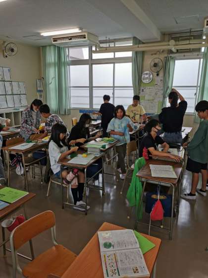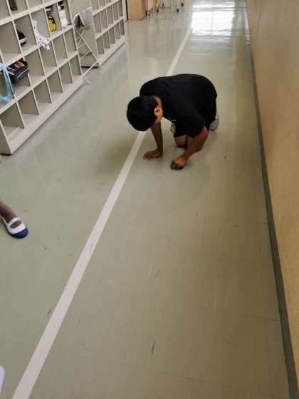 自分たちで作ったオリジナルたわしで学校のいろんなところを掃除しました。