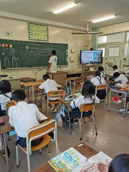 かけ算の順序を考えようということで、お話の問題を図に表すところから始めています。これまでの積み重ねがあるので何が何の何倍ということがすぐに図示できています。