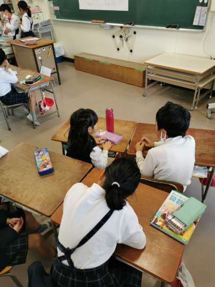 九九の練習をしています。お互いに問題を出したり聞きあったりしています。下がり九九が上手に言える子もいます。