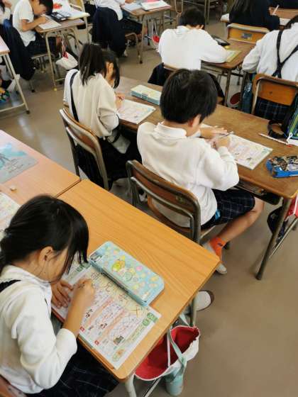 ビーバーの大工事の学習が進んでいます。ビーバーの工事の秘密を読み取り、そのあと漢字学習をしています。