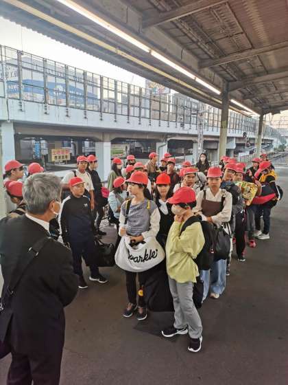 塚本駅につきました。お世話になった添乗員さんとはここでお別れです。歌島小学校に向かいます。