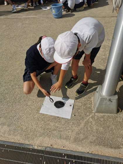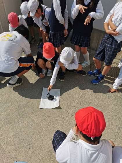 太陽光の熱の強さを実験で確かめています。さつまいものにおいがするとのことです。