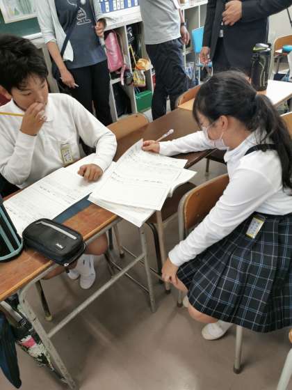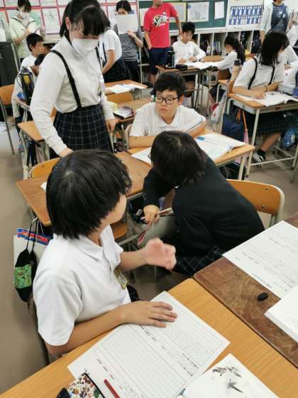 大造じいさんとガンの学習てす。表現に着目して読み取ったことから自分の考えをまとめお互いに交流しています。