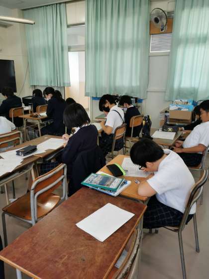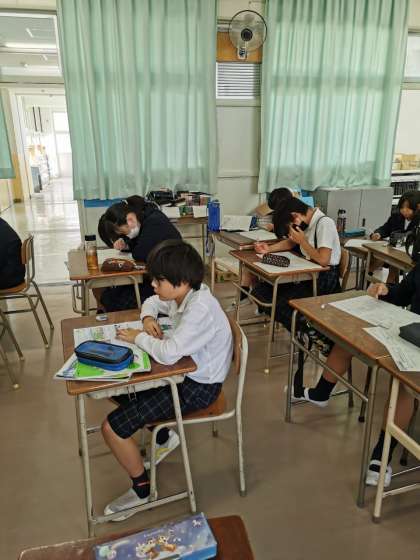 流れる水のはたらきのプリント学習をしています。とても集中しています。