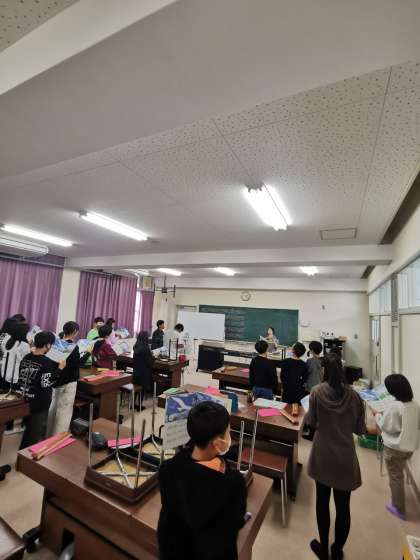 声を作る練習をしたあと、翼をくださいの二部合唱をしています。