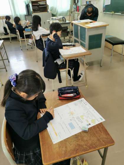 面積のテストをしています。早く終わった、という人も見直しをしています。
