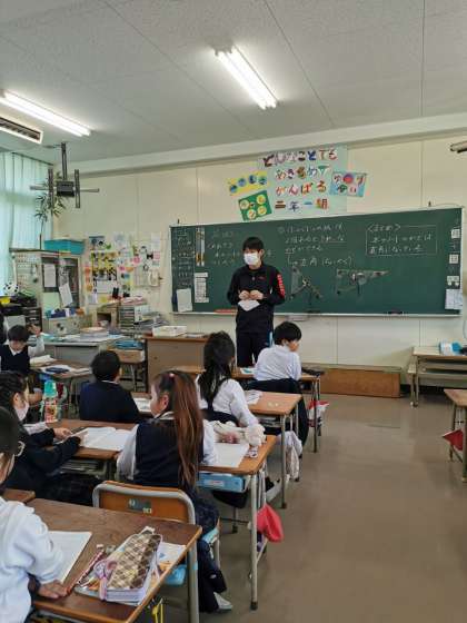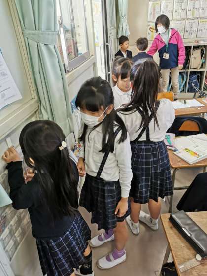 今日は直角について学習しています。教室にある直角を探しています。本当にたくさん見つかりました。