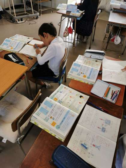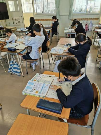 まとめのノートづくりをしています。教科書の図表などもそっくりそのままノートに写すなどしています。