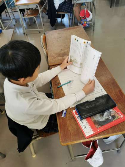 物語「お手紙」の学習です。しっかり音読するところから始まります。