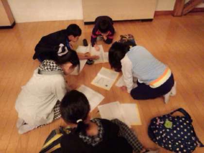 今日の仕上げは、平和学習のまとめです。学習班で、まとめをして、今日の活動は、終了します。みんな頑張りました!早く寝ようね!