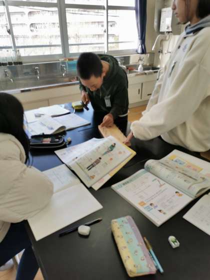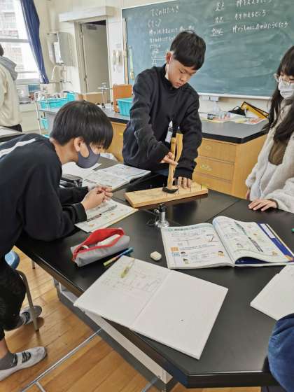 てこの原理を実際に釘抜きで試しています。支点、力点、作用点を意識できたかな?