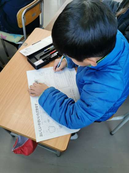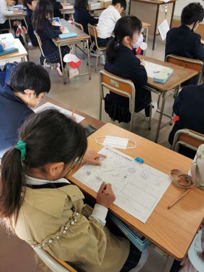 今日は野菜のはたらきについて学んでいます。野菜を一日に250g食べることが大切とのこと。体の健康を保つために必要な働きがあることを教えていただきました。