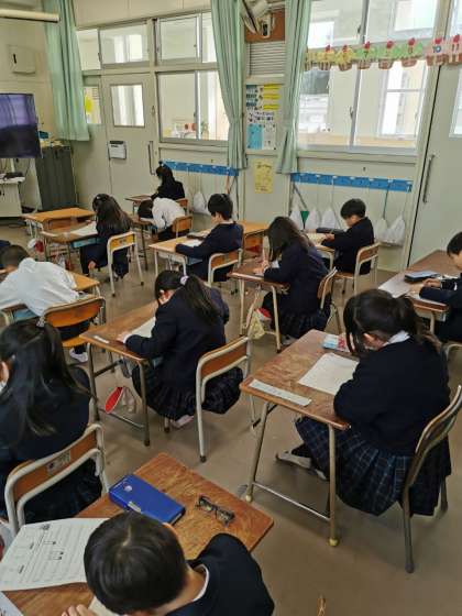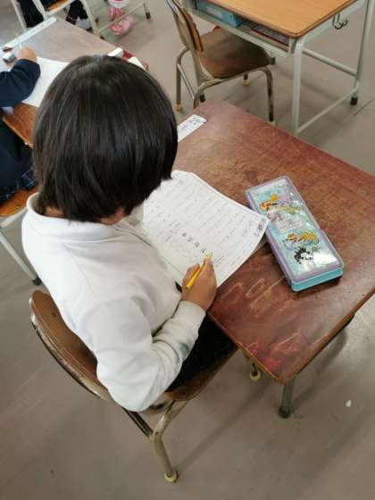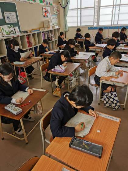 漢検の問題を解いています。みんながんばっています。