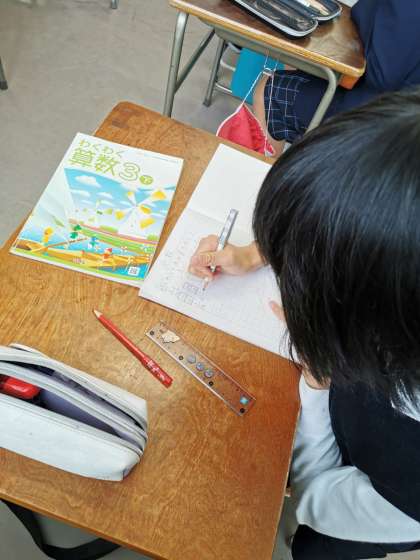 小数の表し方の学習をしています。整数との区別や小数点などといった言葉も学習しました。