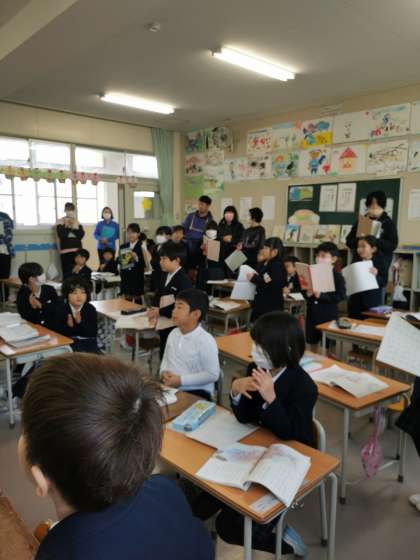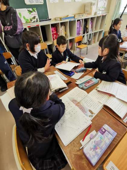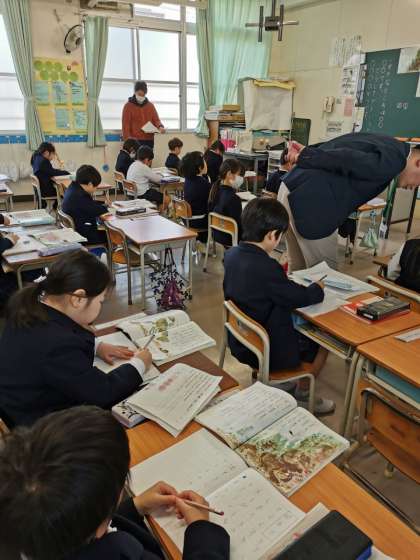 スイミーの学習の続きです。今日は学習の様子を多くの先生方が見に来ています。