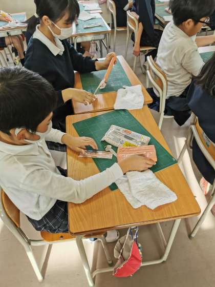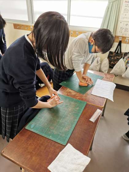 木版画が終わり、次は粘土で土器をつくります。今日はしっかりこねています。
