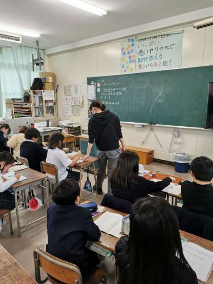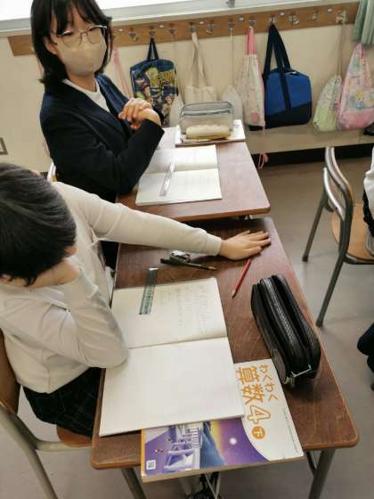 分数の足し算の学習です。帯分数の計算の仕方を考えています。