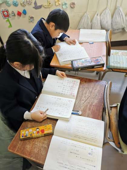 紹介文を書いています。お家の人のことや友達などそれぞれ紹介したい人のことを細かく書いています。