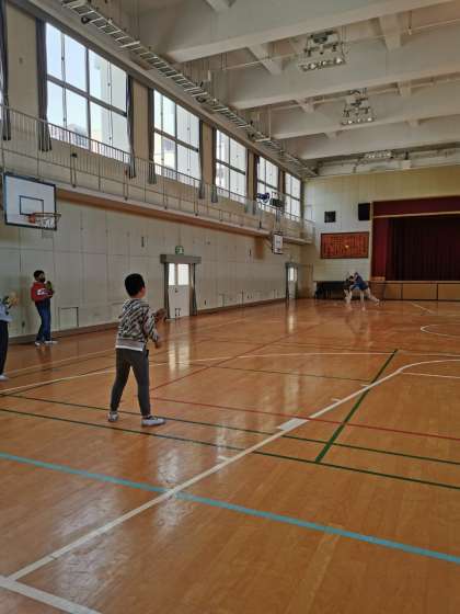 6年生がキャッチボールをしています。さすがに6年生のボールは勢いがあります。