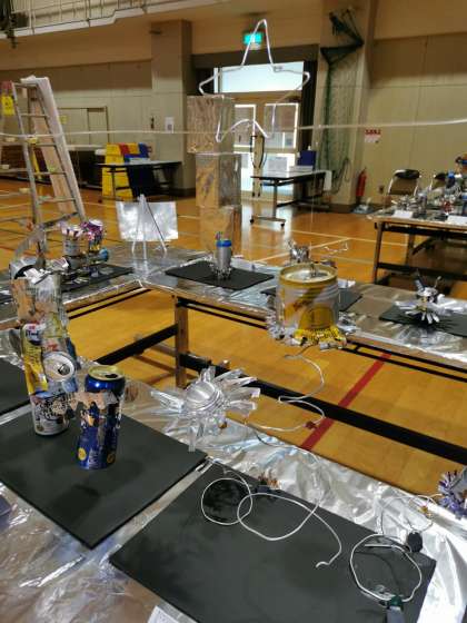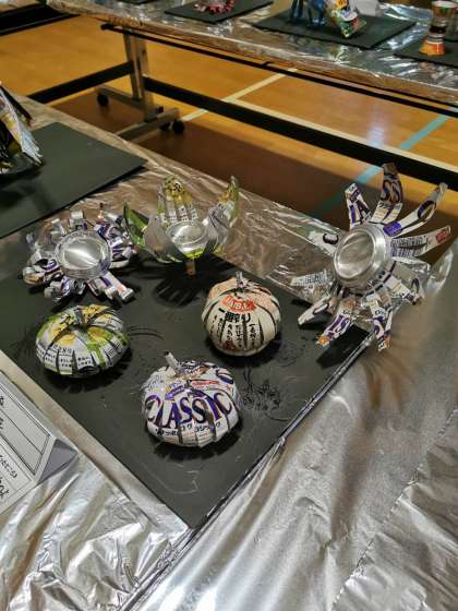 アルミ缶でつくったメタリックワールドです。独特の質感が随所にあらわれています。