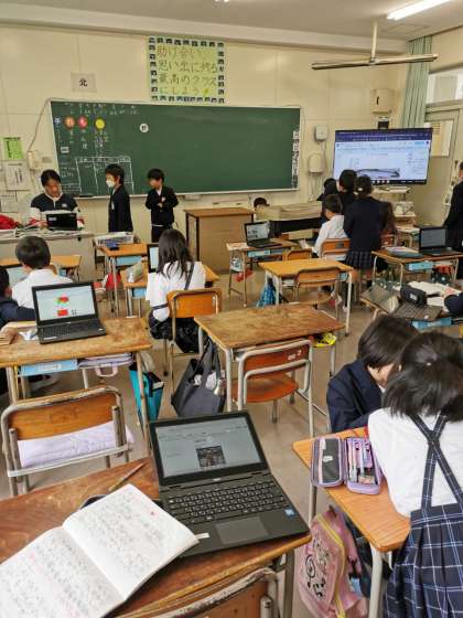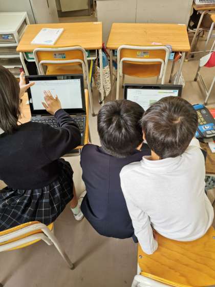 調べたことを発表するための台本づくりに進んでいる子がいます。また、スライドづくりに頑張っている子もいます。