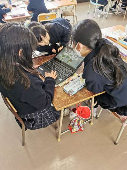 この1年でできるようになったことはどんなことがあるかな、ということでこの1年、どんなことがあったかをクラスルームの記録をグループでみながら思い出しています。