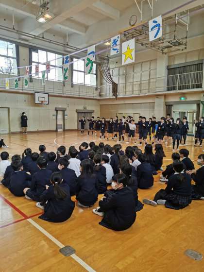運動会で一緒に踊ったダンスを5・6年生で踊ることになりました。突然のお願いにもかかわらず、みんなでそろって踊ることができました。
