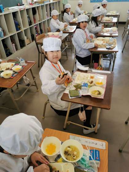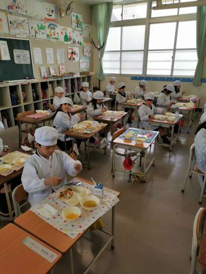 今日の給食は卒業お祝い献立でした。卒業生をお祝いする気持ちでおいしくいただきました。