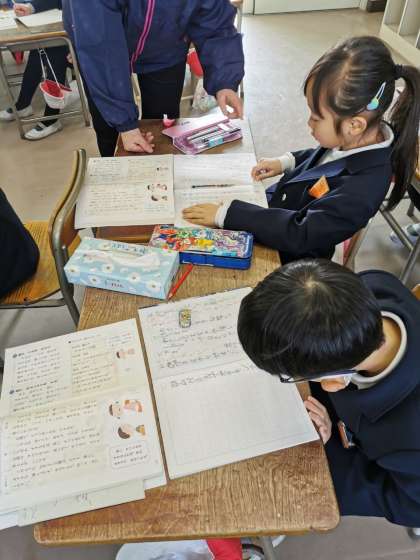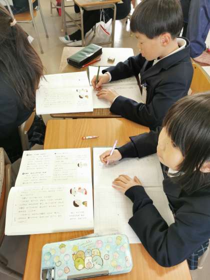 自分の好きな場所について、はじめ・なか・終わりの構成で作文しています。自分の部屋であったり、教室であったり、子どもによっていろいろです。