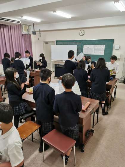 「大空をむかえる朝」を歌っています。がんばって練習しています。
