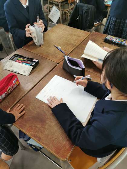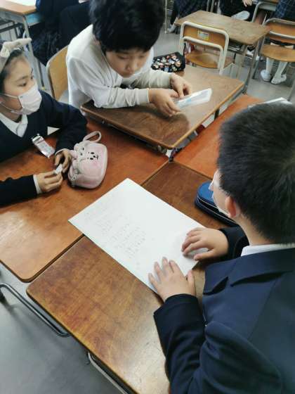 「習い事について」「スポーツについて」など班でアンケートを考えています。今度それぞれのアンケートを実際に行います。