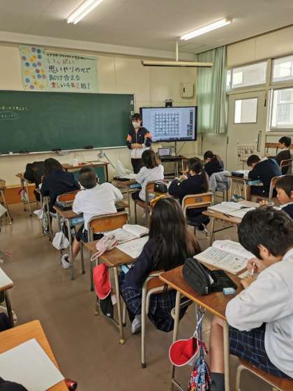 位置の表し方について学習しています。図の内容をどうやって表すかを地図をもとに考えています。