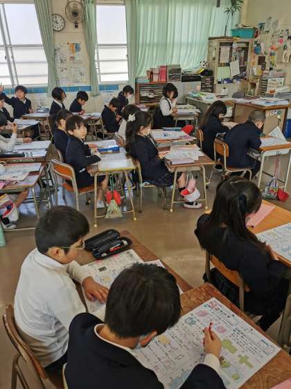 はこの形の学習のテストが返ってきました。振り返りをしています。
