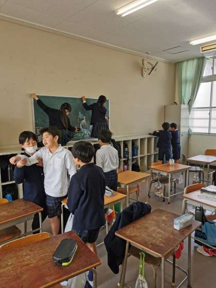 今日は3学期の締めに一日。お掃除したり片付けしたりあっという間に時間が過ぎていきました。それぞれの学級で1年のまとめをしていました。