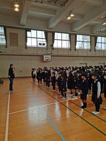 2年生から6年生は講堂で始業式に参加しました。これから1年間、笑顔いっぱいの歌島小学校になるようにがんばりましょう。