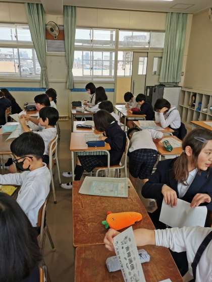 クラス分けが終わって配布物の確認をしています。4階になって遠いなあと言う子もいますが、じきに慣れてくるでしょう。