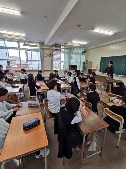 配布物を確認したあと、自己紹介をしています。しっかりとお話を聞いています。