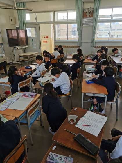 昨日と同じようにかけ算の答え合わせをしています。短い時間にてきぱきできています。