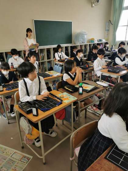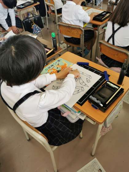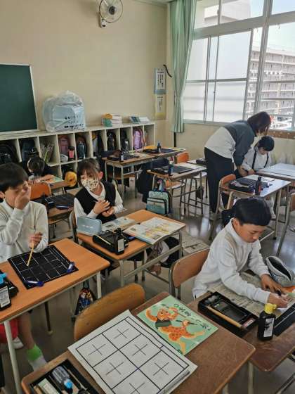 今日はあらためて習字セットの使い方やとめ、はねなどの書き方の確認をしています。