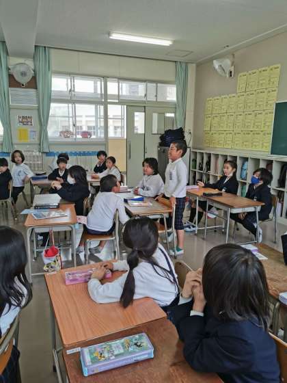 みんなでできる遊びを考えていました。いくつも出てきて、どんどん遊びが黒板に増えていきました。
