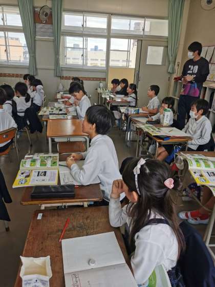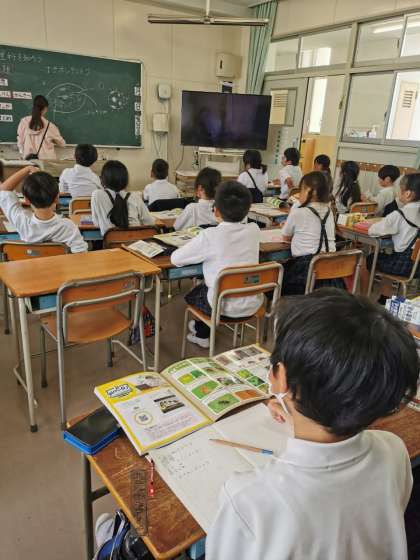 理科の学習が始まりました。どうやって考えていくかという話がありました。それからさっそくナナホシテントウのことを調べました。