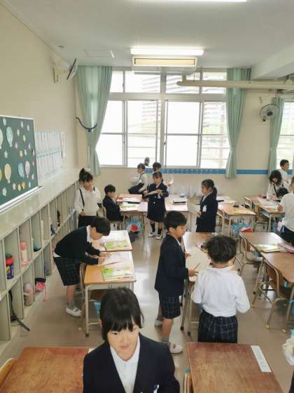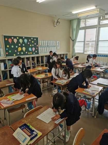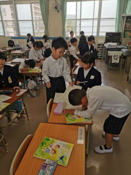 仲良くしよう、お友達を増やすためにお互いに名前を書いています。