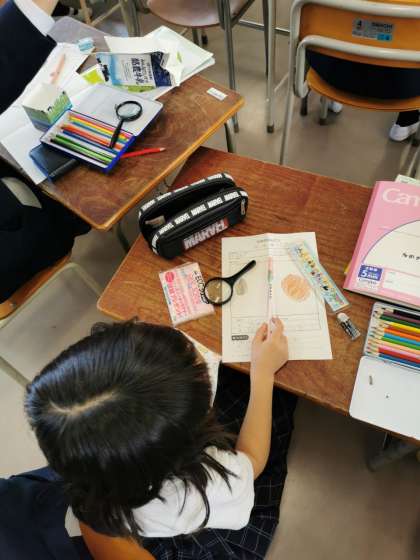 種の観察をしています。種をこんなに詳しく見ることはあまりなかったようです。