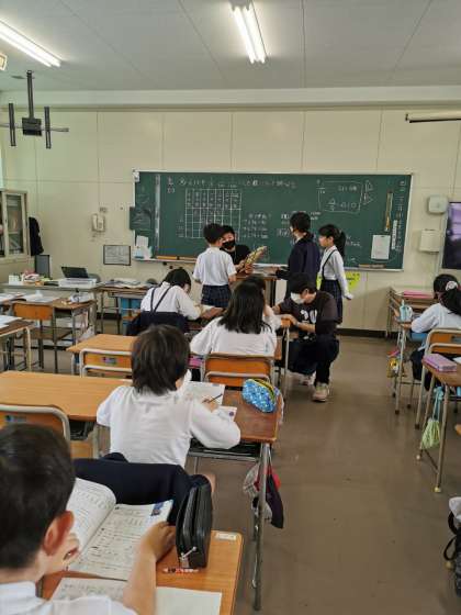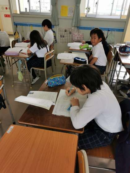 先週に引き続き小数を10倍、あるいは100分の1にしたときの考え方についての学習をしています。