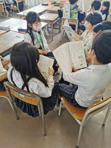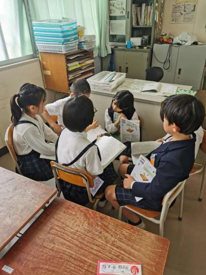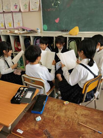 グループで音読の練習をしています。スムーズに何度も繰り返しているグループもあればゆっくりと丁寧に進めているグループもあります。