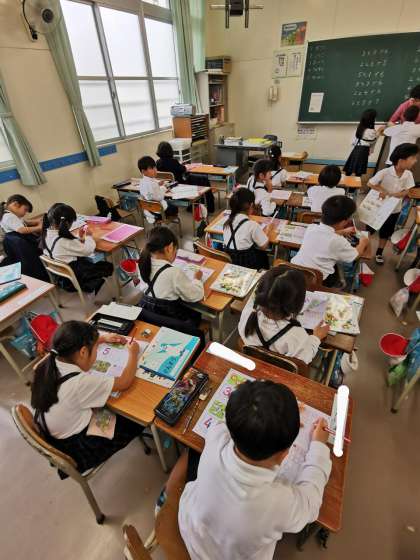 5までの数字をあわせていくらになるかという簡単な足し算の学習しています。