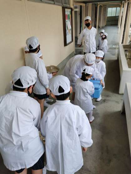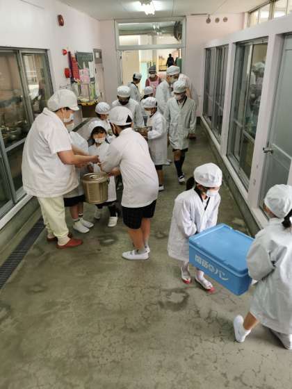 今週から6年生のお手伝いも得ながら食器やおかずなどの運搬をしています。