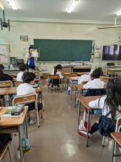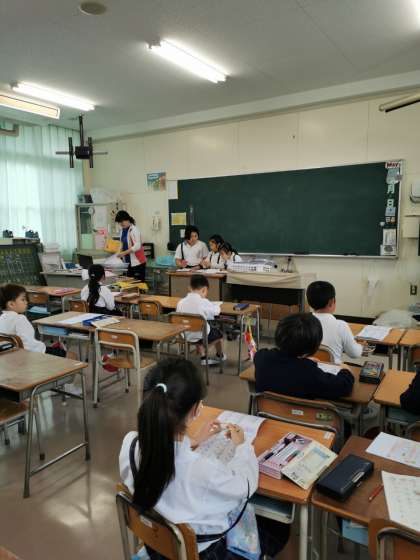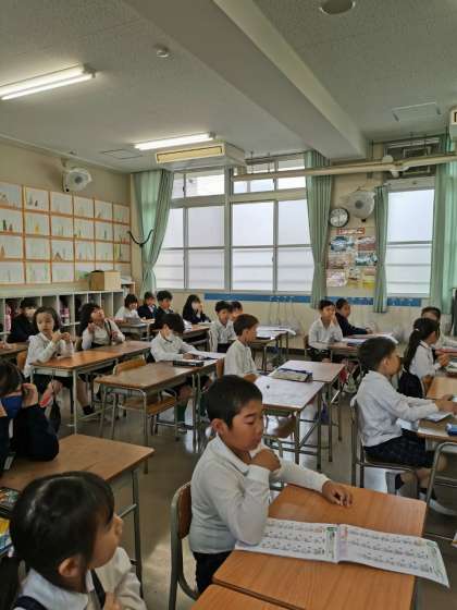朝の会をしています。健康観察やドリルの答え合わせをしています。