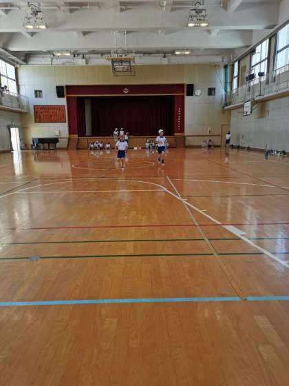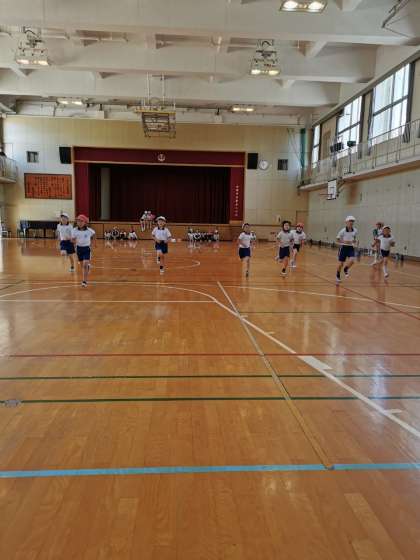 シャトルランをしています。70回を超える子もいました。